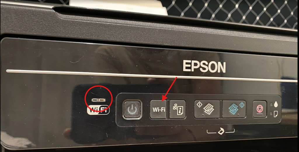 Para que la impresora pueda conectarse a tu red, enciéndela y presiona por 2 a 5 segundos el botón WiFi ubicado en el panel frontal, justo al lado derecho del botón de encendido. Cuando lo hagas, los indicadores LED de la impresora deberán empezar a alternar entre rojo y verde. Cuando esto suceda, la impresora ya está lista para conectarse a tu nueva red.