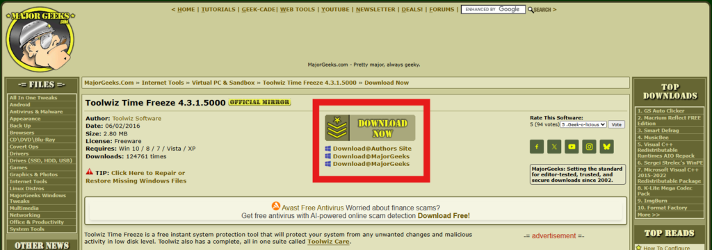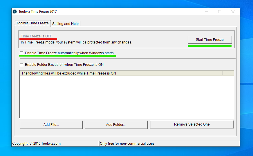 Toolwiz Time Freeze es un software gratuito que nos permite restablecer un computador a su estado «original» cada vez que se reinicia, previniendo el almacenamiento de archivos o instalación de programas no deseados.